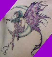 Fairy tattoo is another exciting and sensual way to express one's individuality especially the women. Fairies are a representation of childhood innocence, playfulness and magical fantasies. They are often portrayed as diminutive winged humans who possess magical powers; they are dainty, sweet and innocently charming but can be clever and mischievous at times. These are characters that women can relate to that is why they favored fairy tattoos to express a part of their personality. They can be tattooed in varying colors and can be combined with other design elements including butterflies, flowers, moon and stars to create a mythical piece of art.
